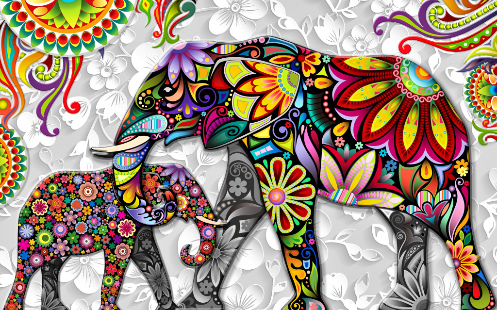 Colorful Illustration of Elephants