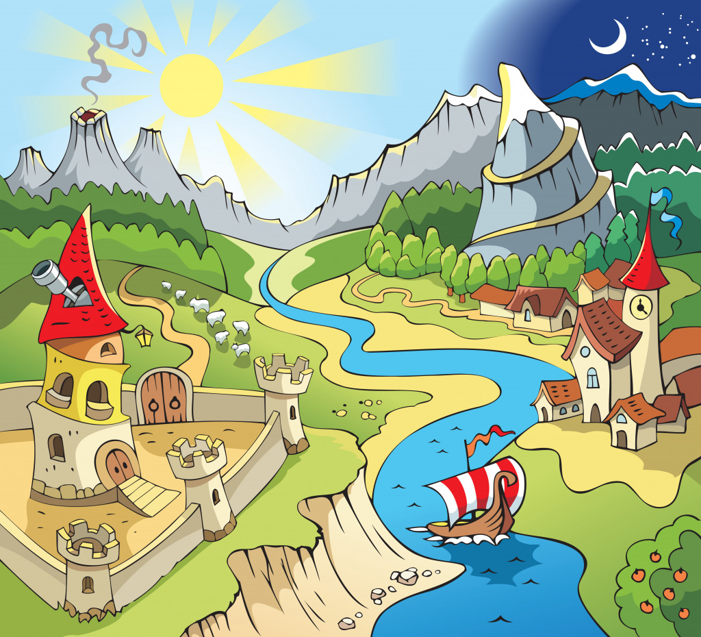 Fairytale Landscape with Castle and Town