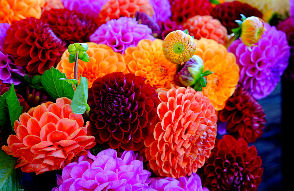Colorful Pompom Dahlia Flowers at the Market
