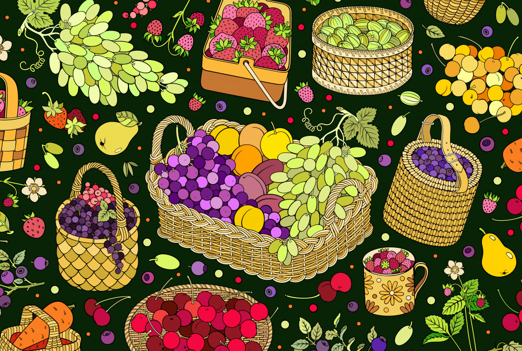 Fruits, Vegetables and Berries in Baskets