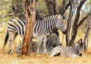 Zebra Family Relaxing in the Shade